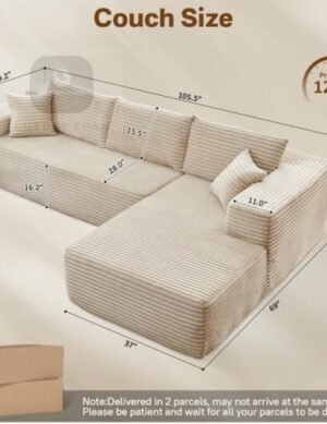 Luxury Luxe L Shape Fleece Fabric Sofa Set Overstuffed Sectional with Footstool & Corner Units – Multifunctional Modular Sofa for Living Room