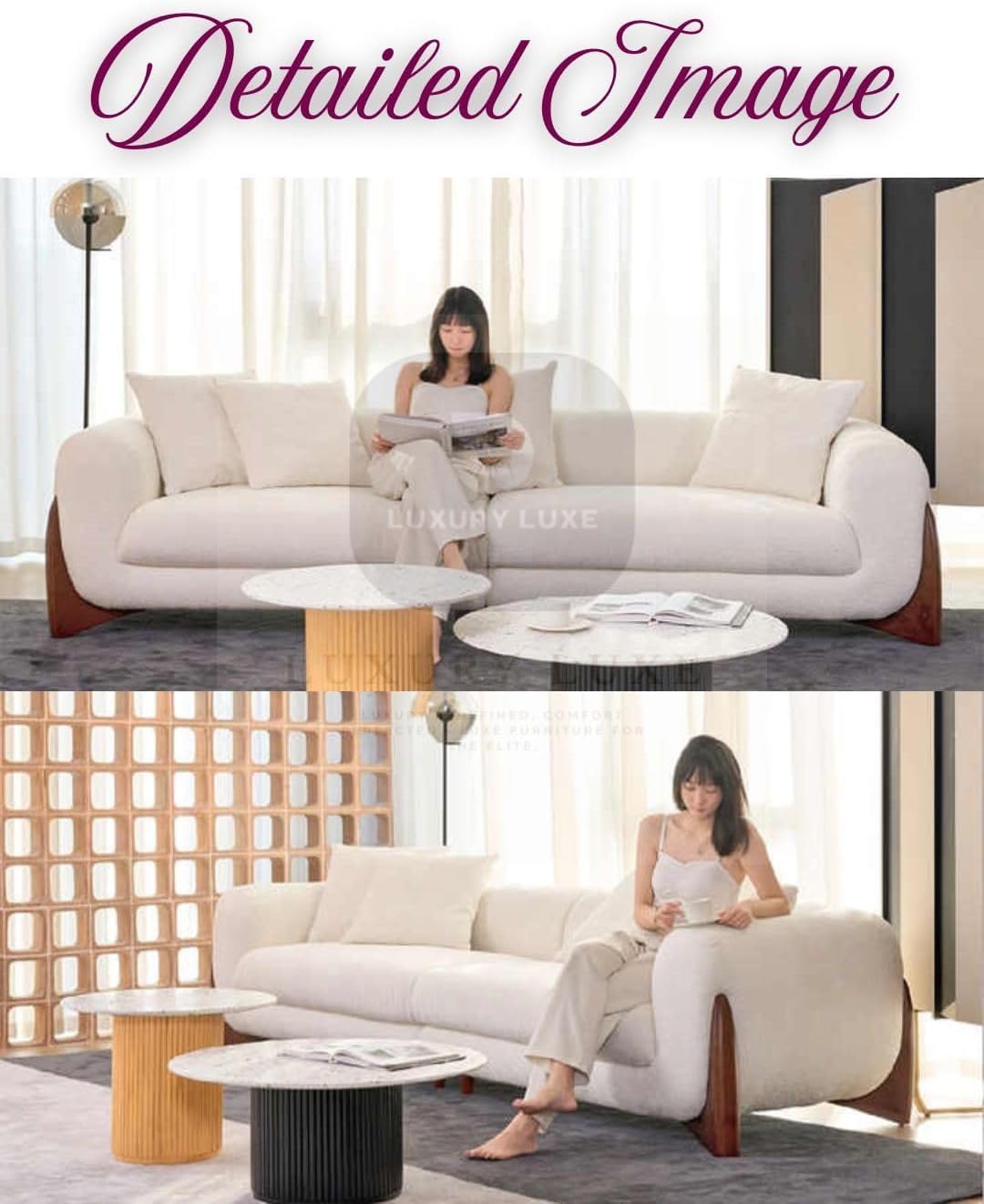 LUXURY LUXE Fleece Fabric Overstuffed Sofa Set in White. Features plush fleece fabric, high-density sponge cushions, and a solid wood frame with 600kg capacity. Modular design available in single to four-seater configurations. Stain-resistant, pet-friendly, and easy to clean. Perfect for any living space with multiple color options available.