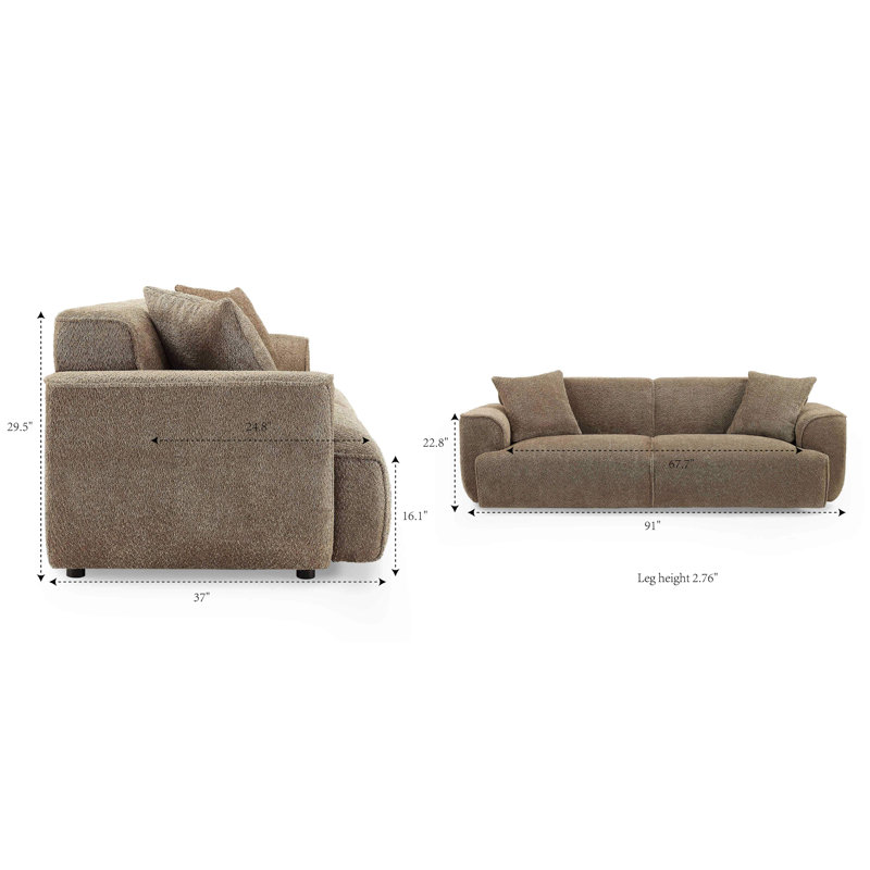 - Primary Materials: Bouclé Fabric, High Density Foam, Pocket Springs, Manufactured Wood Frame