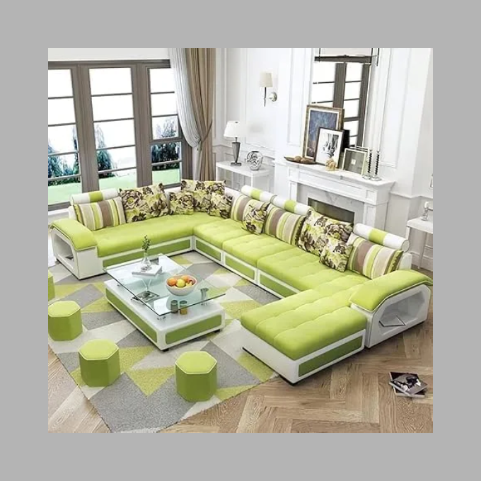 - 🛋️ U-Shape 7-Seater Sofa Set | Modern & Spacious Design ✅ U-Shape Configuration: Perfect for family bonding or entertaining guests with ample seating (7-seater) and a cozy, inclusive layout.
