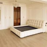Elevate your bedroom sanctuary with the LUXURY LUXE Fleece Fabric Wrap Bed Frame. This exquisitely designed bed frame merges plush comfort with robust stability. The generous headboard is meticulously crafted from high-quality fleece fabric, wrapped over high-elastic memory foam for a soft, luxurious feel. The cushioned side rails provide additional supportive comfort, perfect for relaxing nights. Built on a strong, solid wood main structure and reinforced with metal legs, this frame promises enduring stability and supports up to 400kg. The integrated solid wood slats offer optimal mattress support, reduce noise, and ensure a tranquil sleep environment. Delivered fully assembled and ready to use, complete with our door-to-door service in the UAE. Experience the perfect blend of modern luxury and practical engineering for your bedroom.