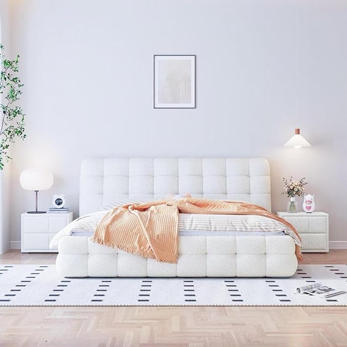 LUXURY LUXE Fleece Fabric Wrap Marshmallow Bed Frame