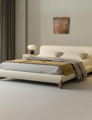 Luxury Luxe Fleece Fabric Wrap Marshmellow Bed Frame – Upholstered Headboard, Solid Wood Structure, (5 Sizes, 3 Colors)
